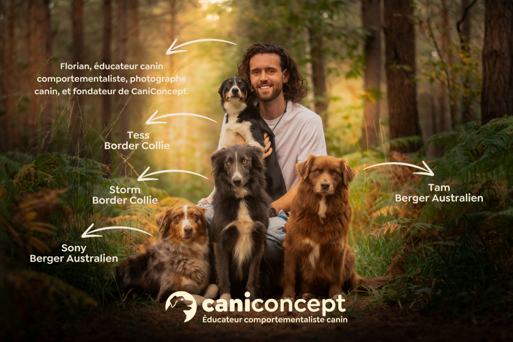 Je m’appelle Florian, je suis éducateur canin comportementaliste et photographe canin. Depuis plusieurs années, j’accompagne les propriétaires de chiens dans l’éducation, la rééducation et les activités canines toujours avec l’objectif de renforcer la relation entre le chien et son humain.
