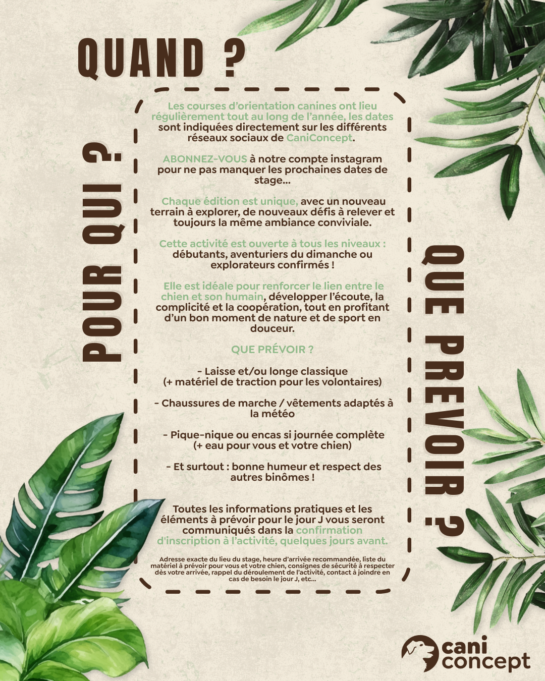 Une fois votre réservation validée, vous recevrez un mail de confirmation comportant des informations complémentaires quelques jours avant le stage.